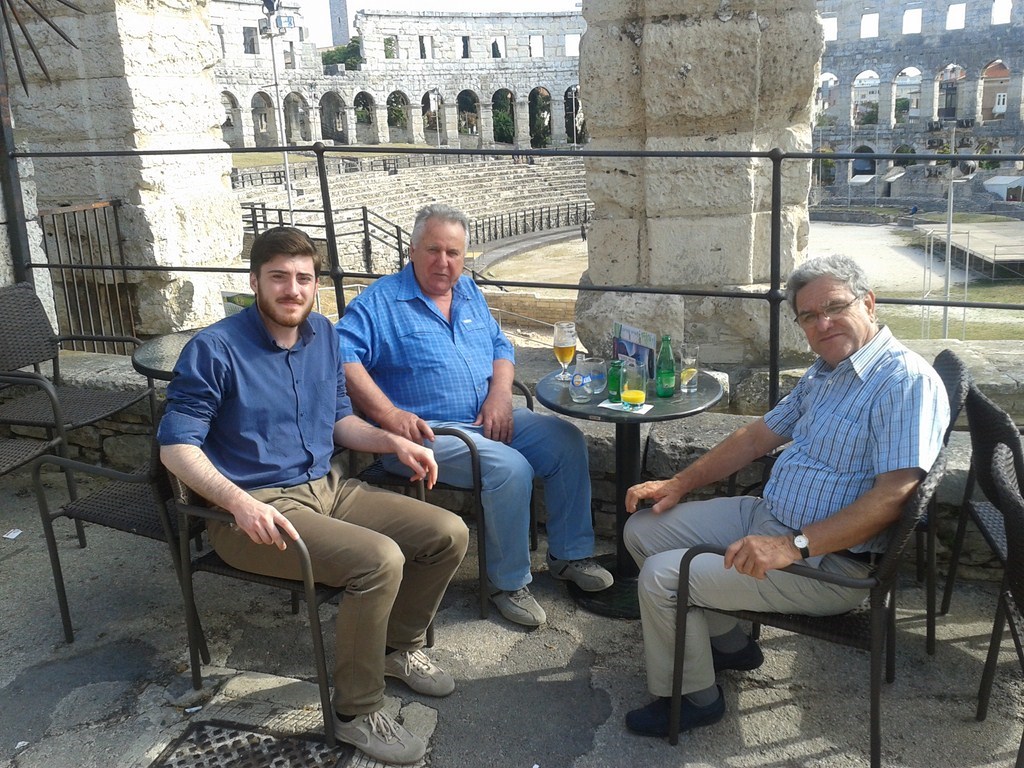 Il 27.6.2014 ha avuto luogo una visita a Pola. La delegazione aquileieiese era composta da una rappresentanza della Presidenza dell’ANPI di Aquileia: Luca Moimas, Flavio Banelli e Lodovico Nevio Puntin, quest’ultimo anche nella veste di Presidente della Fondazione istituto civico aquileiese “Valmi Puntin”. Nella foto scattata davanti all’Arena “romana” di POLA si riconoscono Adriano Ruiba, Vice Presidente dell’Associazione dei partigiani di Pola che in mattinata ci ha ricevuto, assieme al presidente ed al partigiano Venicio originario di Monfalcone, presso la Casa degli antifascisti. Oggetto dell’incontro è stato lo scambio di informazioni sul controesodo avvenuto all’iizio degli anni ’50 di molte famiglie di Monfalconesi e della Bassa friulana prima attratte nell’istria Yugoslava di Tito (Pola, Fiume ecc.) e poi ritornate in Italia. I compagni di Pola, con molta disponibilità collaborativa, hanno incaricato un ricercatore universitario per effettuare ricerche sugli archivi amministrativi di Pisino, dove si dovrebbe trovare traccia dei nomi di persone o famiglie originarie del monfalconese e della bassa friulana, in particolare di Aquileia e Comuni confinanti, in quel periodo presenti a Pola.