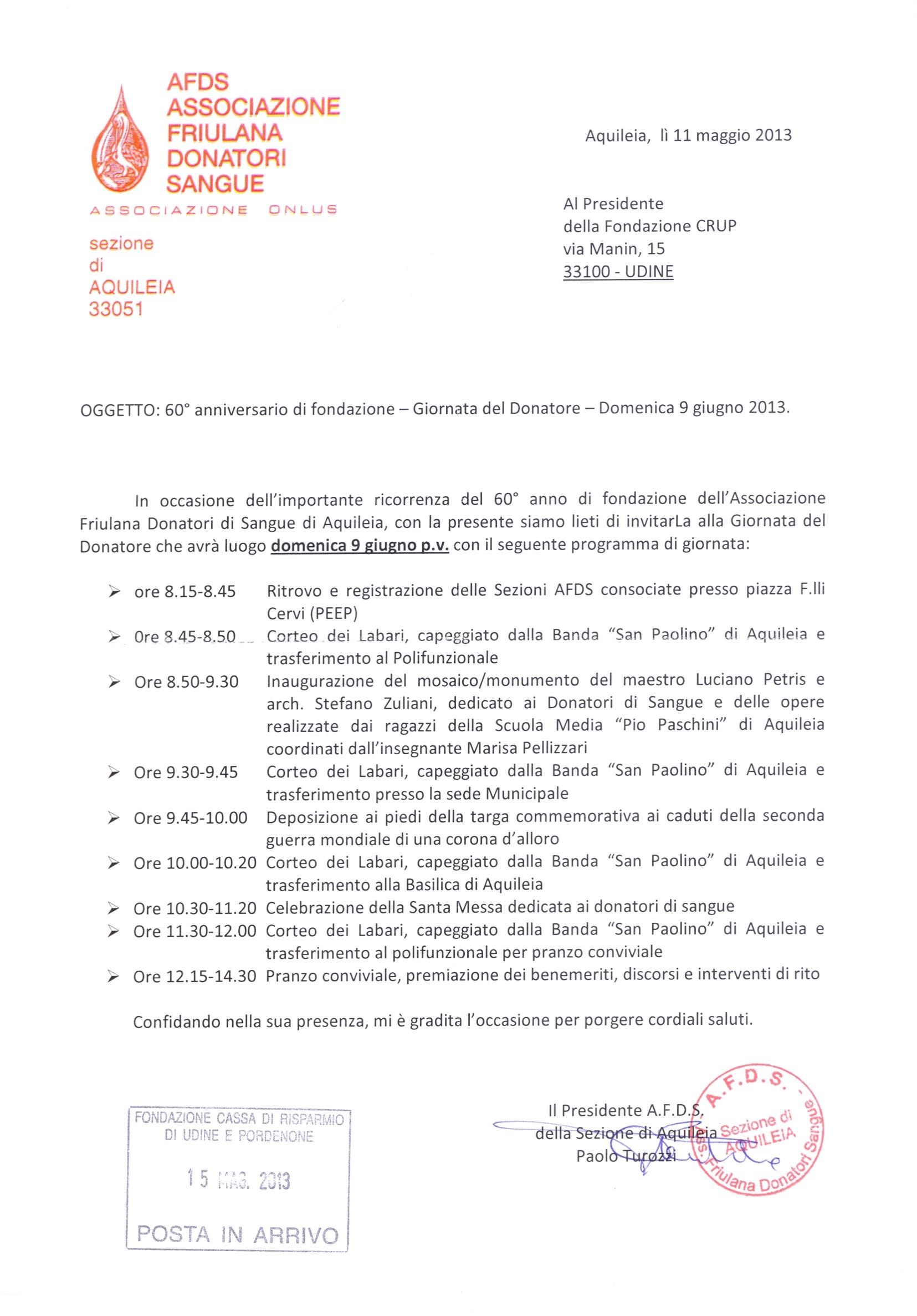 Aquileia. Domenica 9.6.2013. 60° costituzione AFDS di Aquileia.