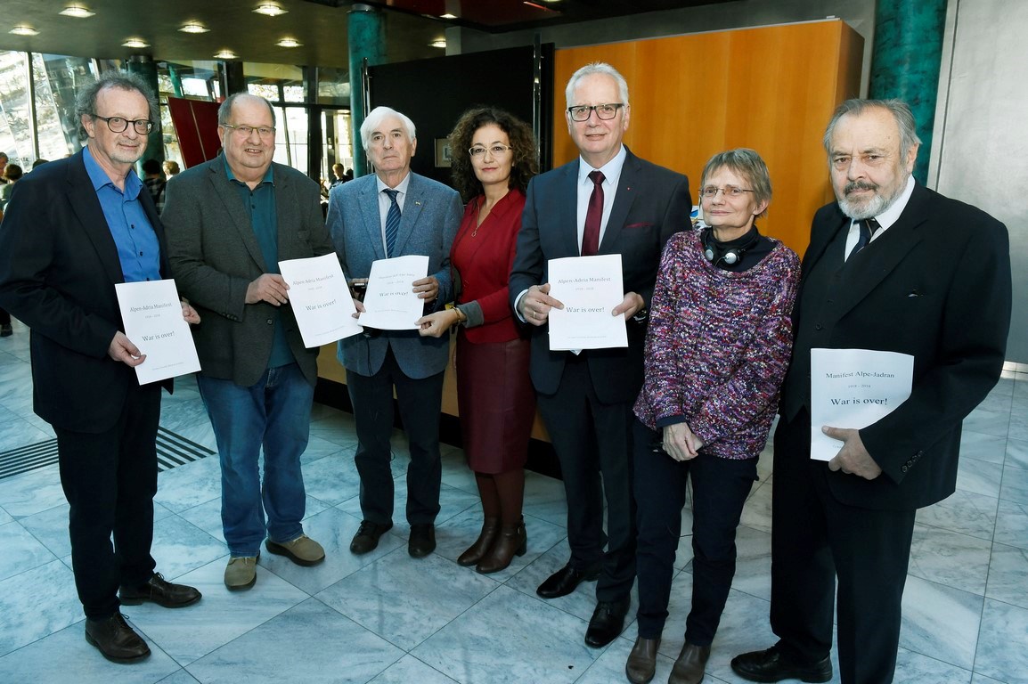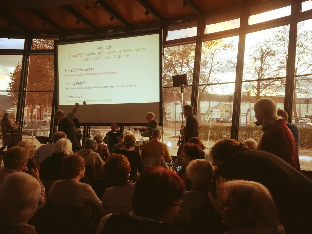 Domenica 11 novembre 2018, dalle ore 14 alle ore 18, ha avuto luogo a Klagenfurt (Austria) presso la sede dell’Archivio del Land della Carinzia, un incontro di centinaia di persone rappresentative di oltre 50 associazioni della Carinzia (Austria), della Slovenia e del Friuli Venezia Giulia (Italia), al quale ha aderito anche la Fondazione Istituto Civico Aquileiese Valmi Puntin presente con una delegazione. Durante l’incontro si sono alternati scrittori, rappresentanti di Università e di Associazioni che si sono soffermati sul significato dei 100 anni della fine della prima guerra mondiale. Nessuna esaltazione di eroismo, di una guerra che ha mietuto per niente centinaia di migliaia di vittime. Al contrario si è ragionato sui nuovi grandi temi che ci affliggono, riflettendo sule iniziative positive che si possono attivare in una area – l’Alpe Adria – che nel secolo scorso ha ospitato ben due guerre mondiali e che sente particolarmente il bisogno di un impegno per la pace. E’ stato condiviso il testo del MANIFESTO ALPE ADRIA che ci permettiamo divulgare e pubblicare, confidando che altre Associazioni e cittadini possano valutarlo e farlo proprio. Pubblichiamo il Manifesto, alcune foto dell’evento di Klagenfurt e l’invito.