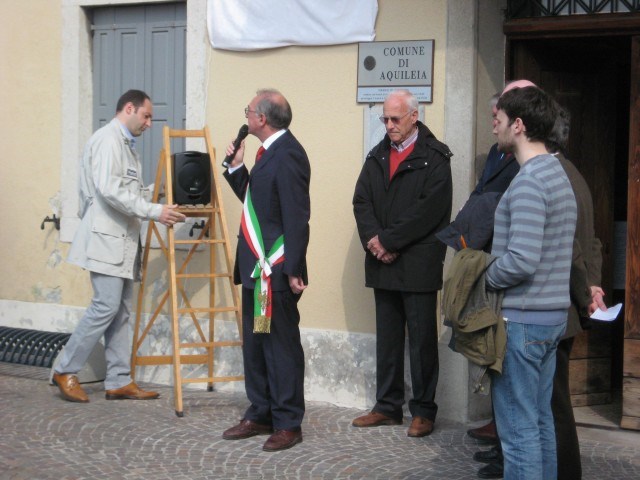 Nell’ambito di una serie di eventi organizzati in occasione della manifestazione del 25 aprile 2010, l’ANPI di Aquileia, in collaborazione con il Comune e la Biblioteca di Aquileia, l’Istituto storico friulano per la storia del movimento di liberazione, la Lega comunale SPI – CGIL, la Fondazione Valmi Puntin ed il Centro L. Gasparini di Gradisca d’Isonzo, ha invitato a svolgere l’orazione ufficiale il già Presidente provinciale di Udine dell’ANED – Associazione Nazionale degli ex Deportati – e attuale Consigliere comunale di Udine avv. Giovanni Ortis. Accompagnati dai brani musicali proposti dalla Banda San Paolino i partecipanti alla manifestazione si sono ritrovati davanti al Municipio per la posa della corona d’alloro alla lapide dei partigiani e poi l’avv. Ortis ha pronunciato il suo intervento davanti al monumento della Resistenza, preceduto dal presidente dell’ANPI di Aquileia Luca Moimas e dal Sindaco di Aquileia Alviano Scarel. Alla manifestazione del 65^ anniversario della liberazione nazionale dal nazi – fascismo erano presenti delegazioni dei Comuni gemellati con Aquileia di