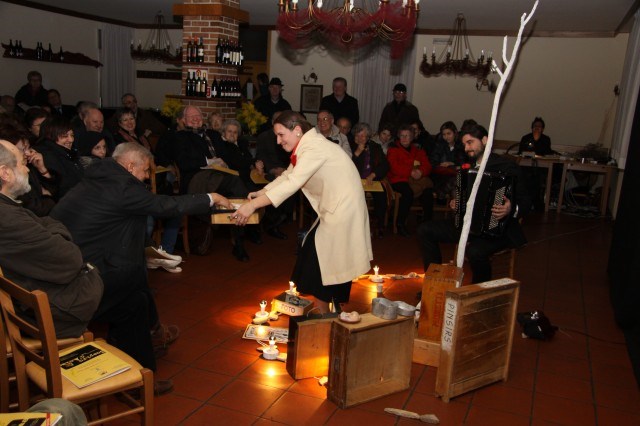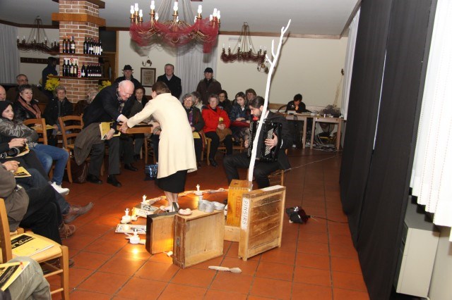dalla voce di Rosina Cantoni negli incontri avuti con lei e con musiche interpretate da David Cej. Lo spettacolo si è svolto nella Casa del popolo di Aquileia, in Vicolo Zorutti 1, dal titolo: