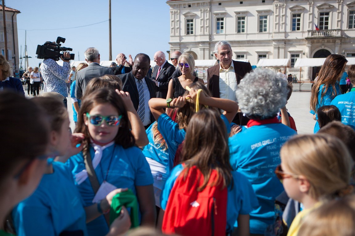 il 22 settembre 2017 una delegazione ufficiale del Comune di Aquileia, composta dal Sindaco Gabriele Spanghero e dal vice Sindaco Luisa Contin, nonchè da Lorenzo Goat e dal già Sindaco Lodovico Nevio Puntin, in rappresentanza della Sezione ANPI e della Fondazione Valmi Puntin di Aquileia, sono stati ricevuti dal Sindaco di Pirano Peter Bossmann e dai due vice Sindaci tra cui Bruno Fonda, espressione della Comunità degli italiani. L’occasione rappresentava la cerimonia ufficiale di ricordo dei 40 anni della firma dell’atto di gemellaggio e collaborazione tra i due Comuni, avvenuta nel 1977 con Sindaci Ivan Bazec (Pirano, Repubblica Slovena allora Jugoslavia) e Lodovico Nevio Puntin (Aquileia). A Pirano già dal giorno prima 21 settembre si trovava una nutrita rappresentanza degli alunni della Scuola primaria di Aquileia, accompagnati per l’occasione dagli insegnanti e dal Dirigente scolastico di Aquileia dr. Aldo Durì. Gli alunni sono stati ospitati dalle famiglie dei ragazzi di Pirano, di pari età, e durante i due giorni hanno indossato una maglietta con le scritte in italiano e in sloveno.