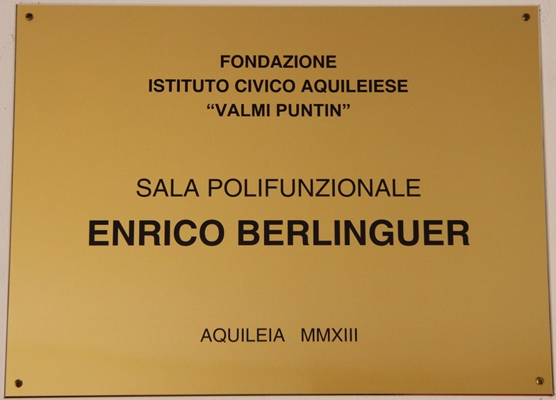 Accompagnati dai brani del gruppo ottoni dell’Associazione culturale musicale San Paolino di Aquileia (che hanno proposto l’Inno di Mameli e l’Inno alla Gioia), subito dopo è stata inaugurata la sala polifunzionale intestata al Segretario generale del PCI Enrico Berlinguer, che negli anni ’70