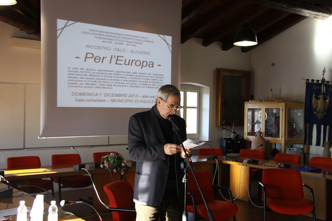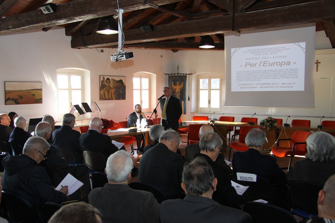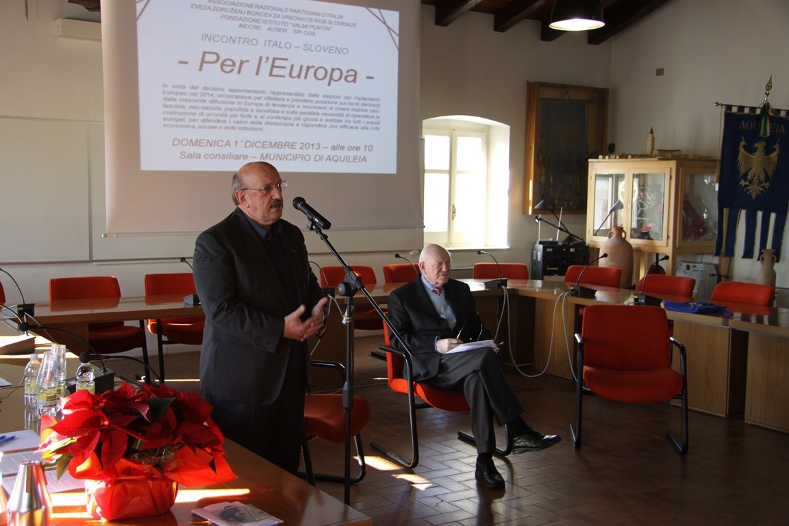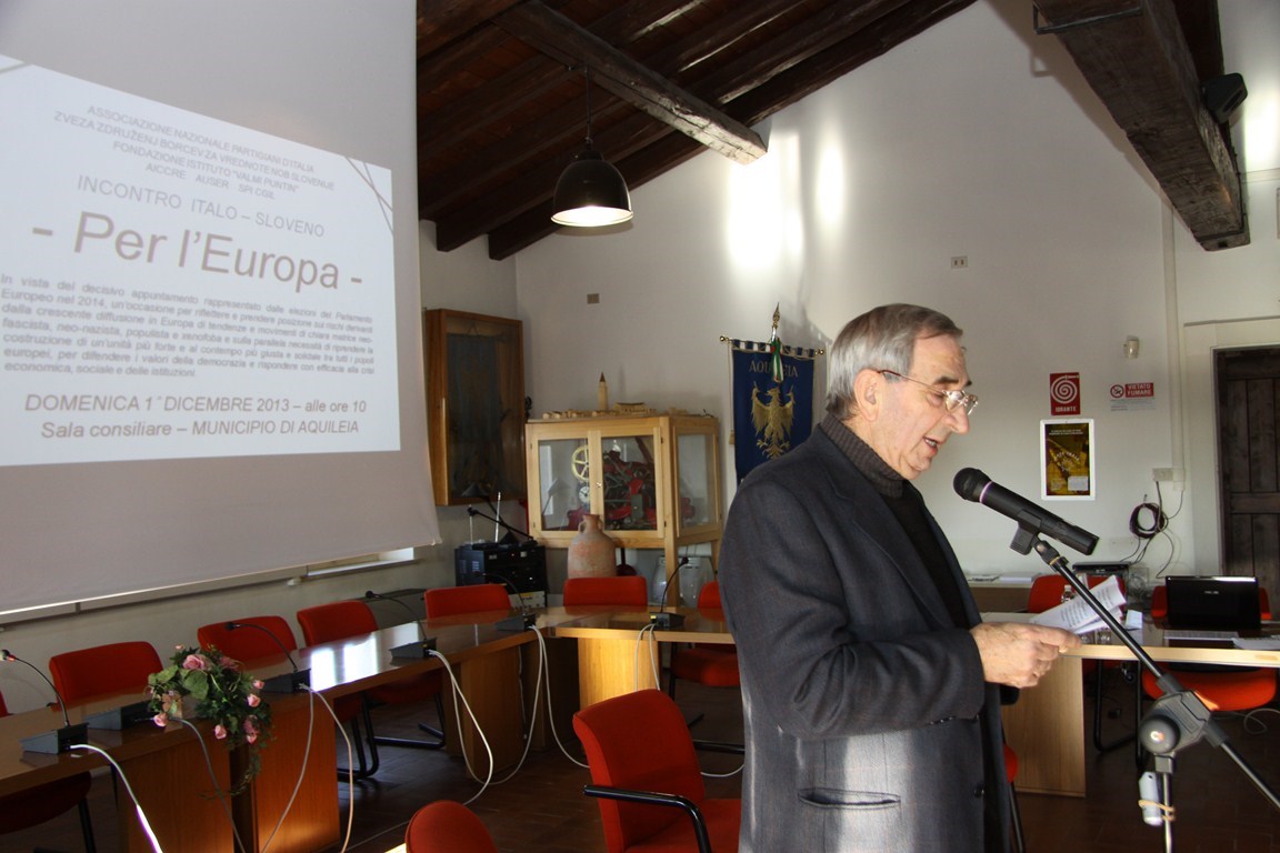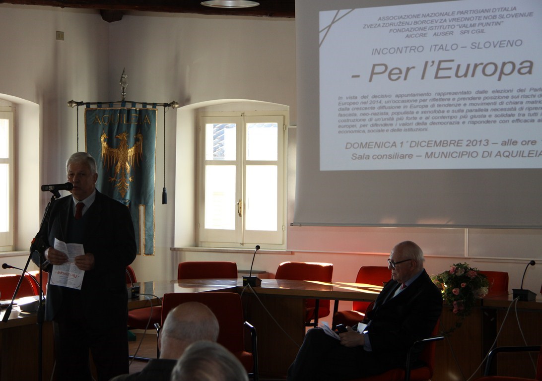 Promosso dall’ANPI di Aquileia, della Provincia di Udine e della Regione Friuli Venezia Giulia, dalle Associazioni dei combattenti per la valorizzazione della lotta popolare di liberazione di Pirano, Sezana e della Slovenia, in collaborazione con la Fondazione Valmi Puntin, lo SPI CGIL, l’AUSER e l’AICCRE del Friuli Venezia Giulia e con il patrocinio del Comune di Aquileia, ha avuto luogo domenica 1 dicembre 2013, presso la sala consiliare del Municipio di Aquileia, un incontro