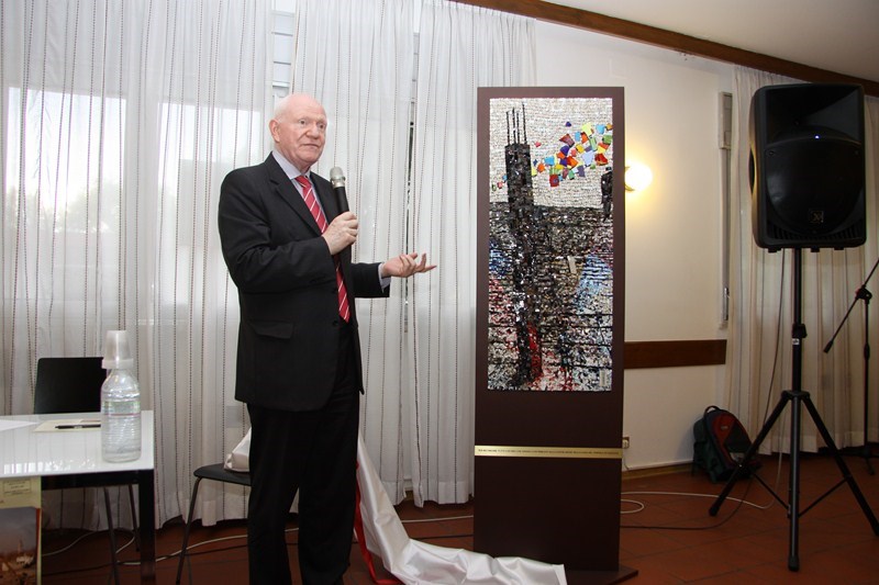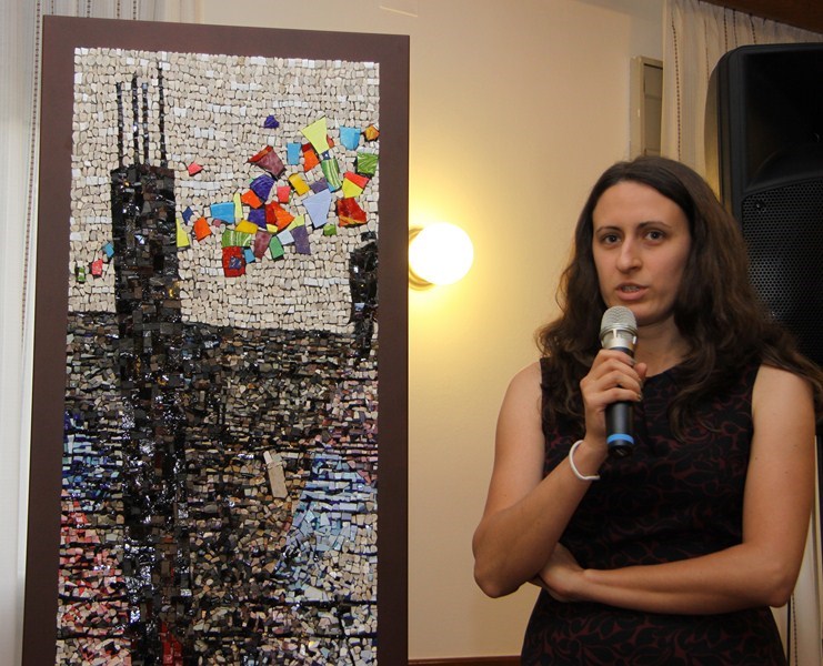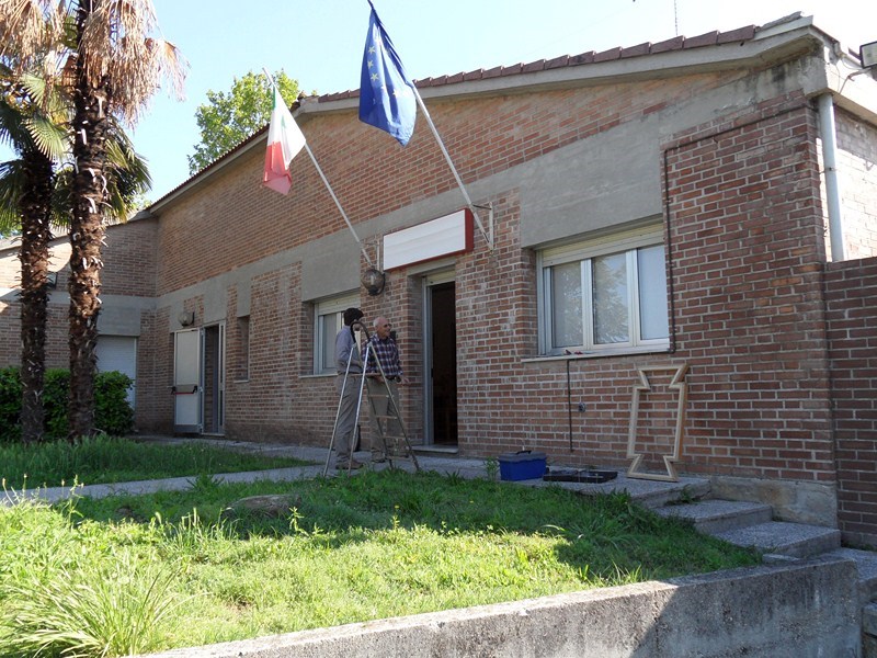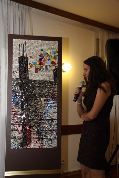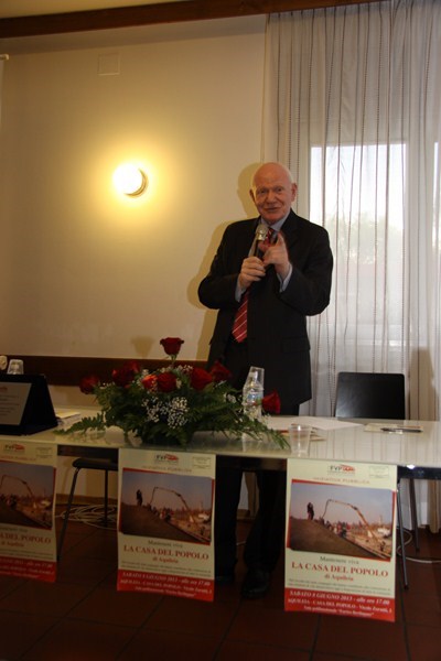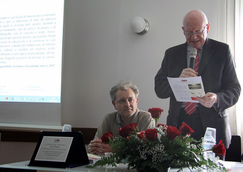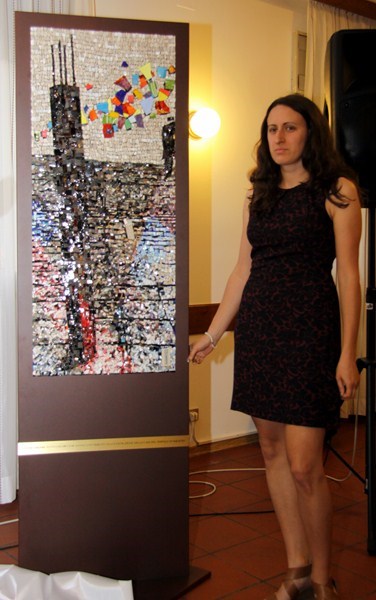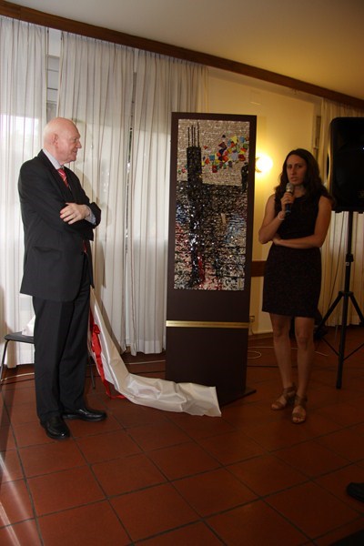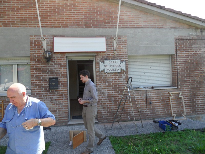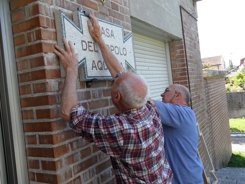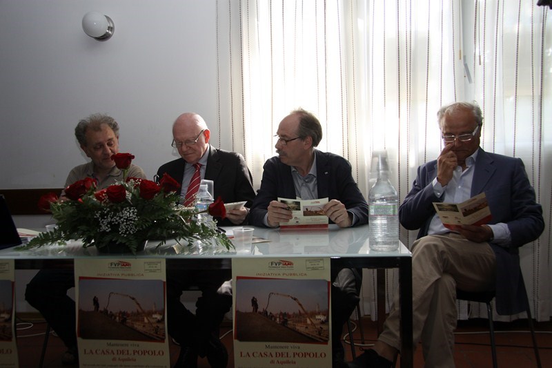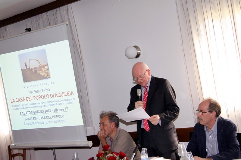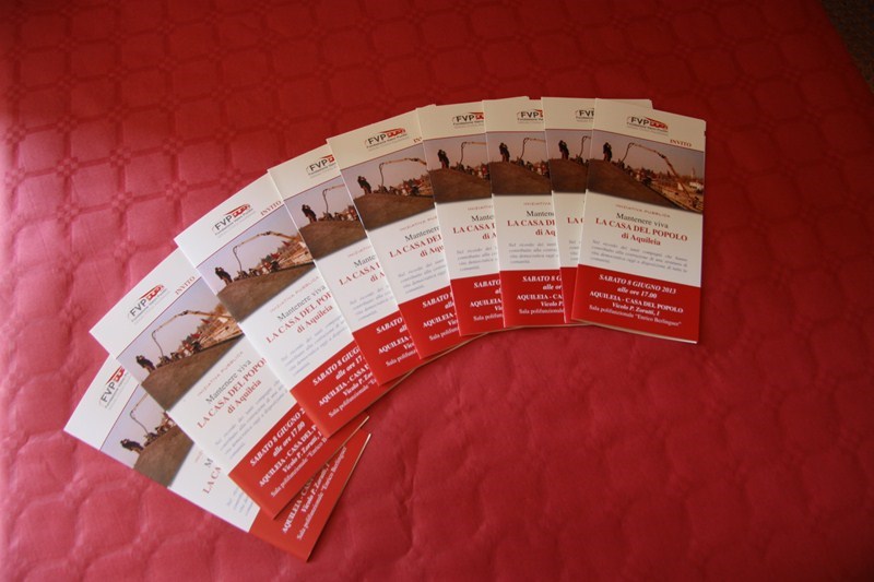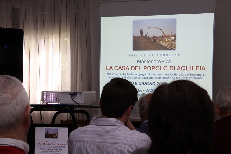 Sabato 8 giugno 2013, presso la Casa del popolo di Aquileia, assistita dall’Assessore regionale alla Cultura Gianni Torrenti, la maestra mosaicista aquileiese Arianna Puntin ha tolto il nastro rosso che racchiudeva il candido drappo di seta bianca coprente il mosaico su stele realizzato per ricordare il lavoro volontario fornito da tanti compagni per realizzare la Casa del popolo ed il piazzale festeggiamenti di proprietà della Fondazione Valmi Puntin. Subito dopo, in una sala gremita di pubblico, con brani musicali del gruppo ottoni dell’Associazione Culturale Musicale San Paolino (l’Inno dei lavoratori, Bella ciao e musiche di repertorio), Arianna ha presentato la sua opera.
