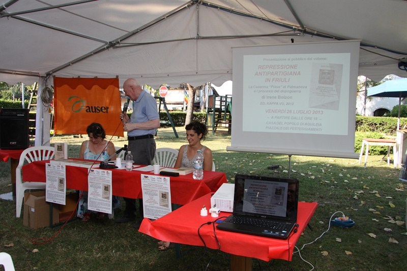 Presentato alla Festa dell’Unità di Aquileia il 26.7.2013 il libro di Irene Bolzon sulla repressione antipartigiana alla caserma Piave di Palmanova. Presente l’editore Alessandra Kersevan di Kappa Vu.