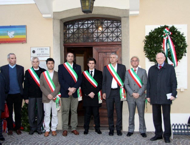 Celebrazione 68^ anniversario liberazione nazionale – Aquileia 14.4.2013. Delegazioni di Pirano, Sezana (Slovenia) e Maria Saal (Austria).