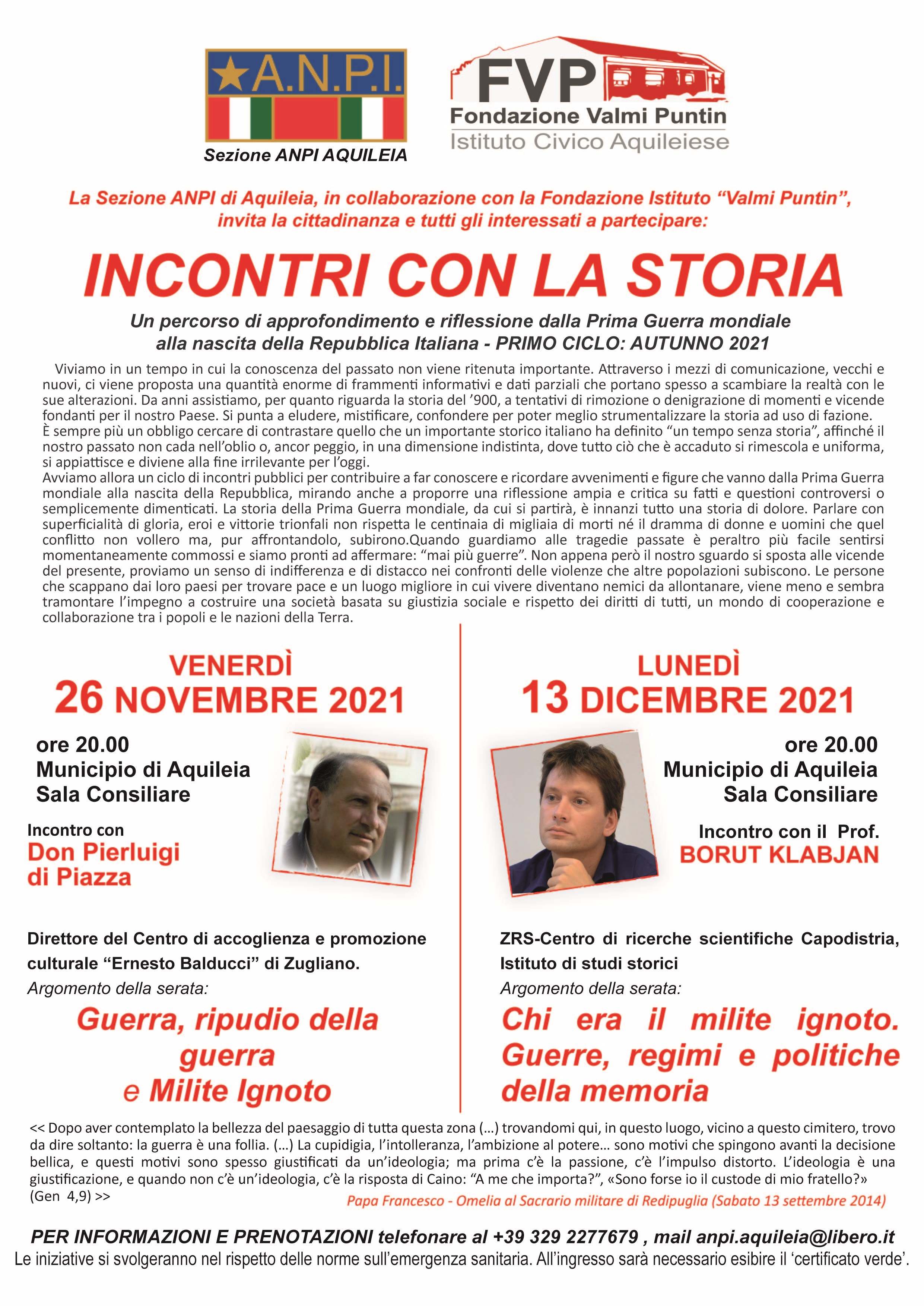 Guerra, ripudio della guerra e Milite Ignoto – don Pierluigi Di Piazza. Incontri con la storia: Aquileia venerdì 26.11.2021 ore 20 Municipio