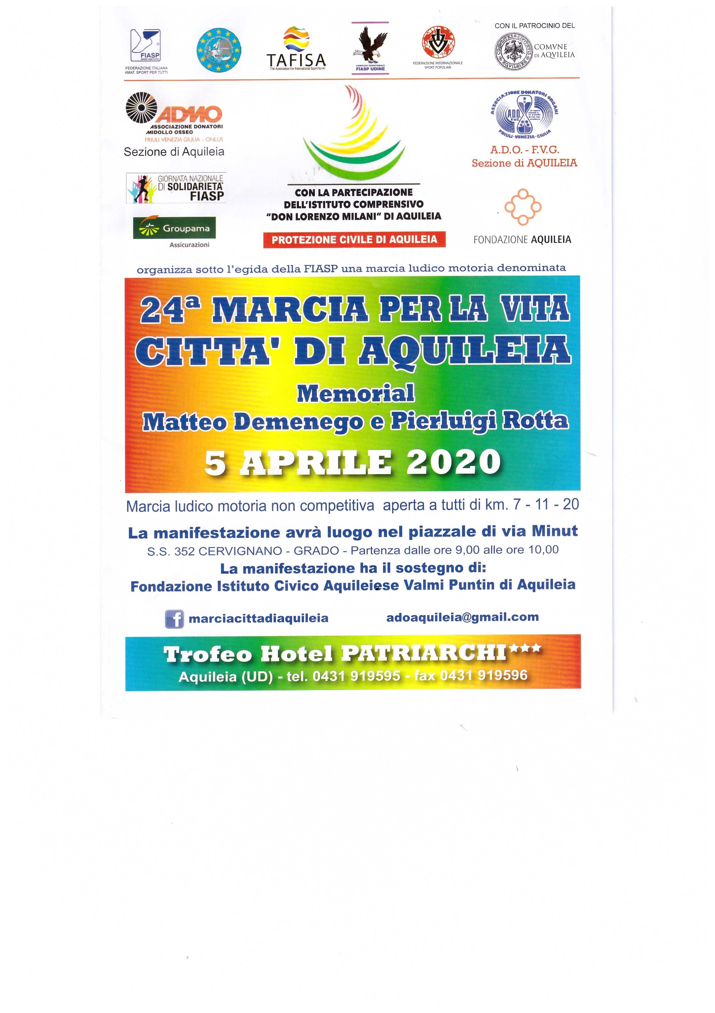 24^ MARCIA PER LA VITA – CITTA’ DI AQUILEIA, domenica 5.4.2020, Piazzale festeggiamenti di via Minut