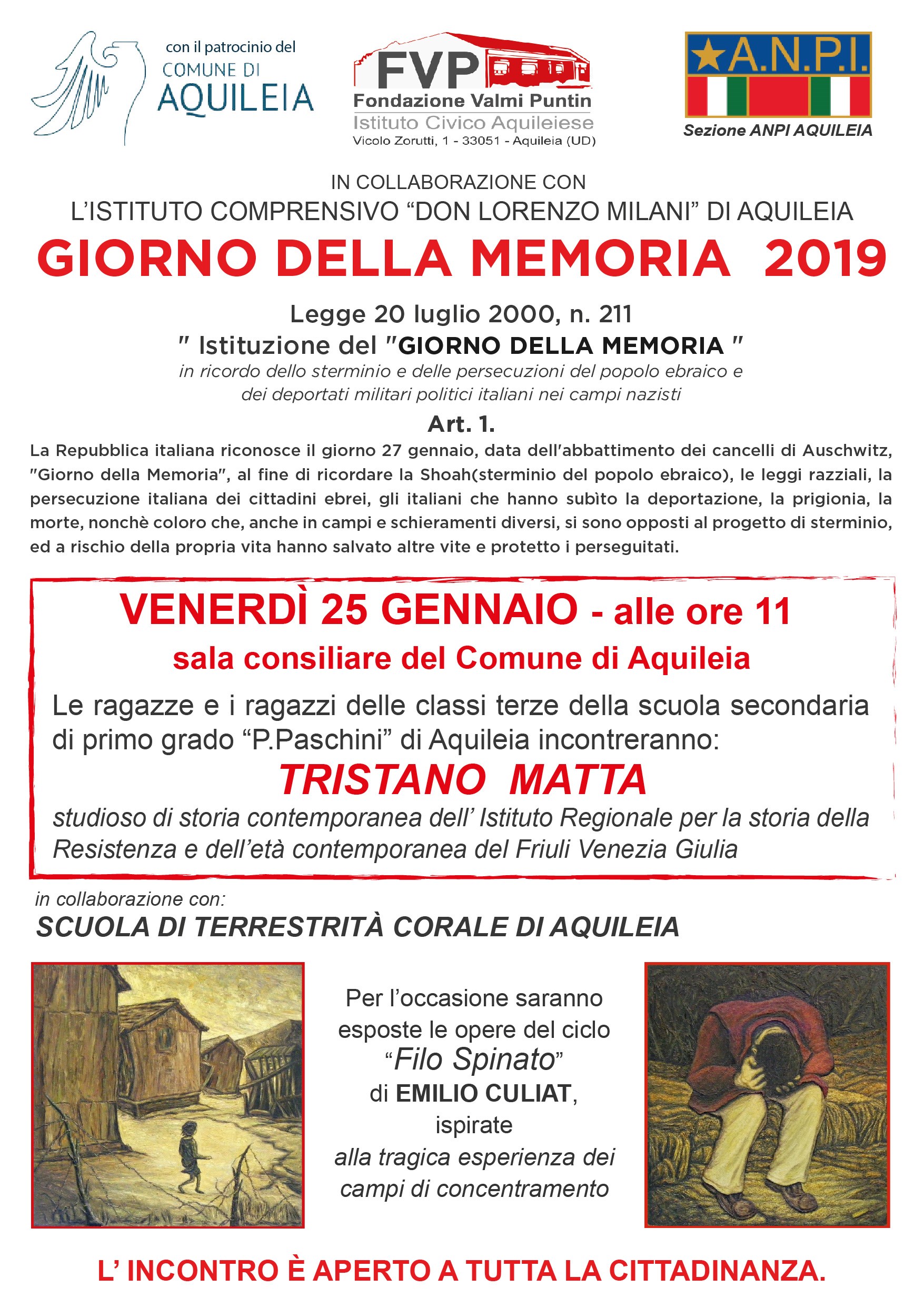 Giorno della memoria 2019. Aquileia venerdì 25.1.2019 ore 11 sala consiglio comunale.