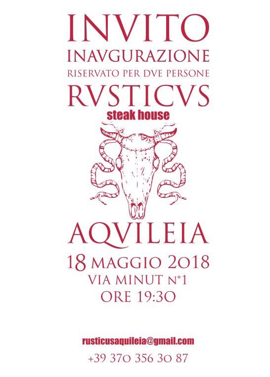 RUSTICUS steak house: venerdì 18.5.2018 ore 19.30 Aquileia, Via Minut 1, Inaugurazione nuova gestione birreria e steak house.